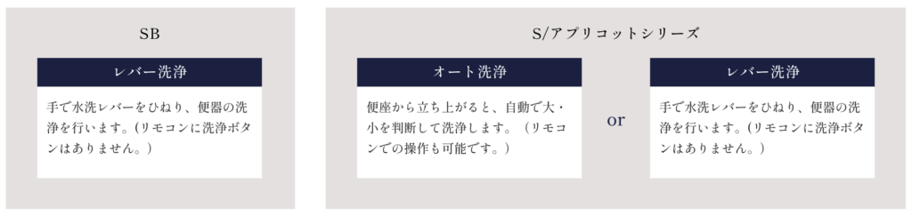 | 便座ウラ自動洗浄 | ー | ー | ー | ![]() |