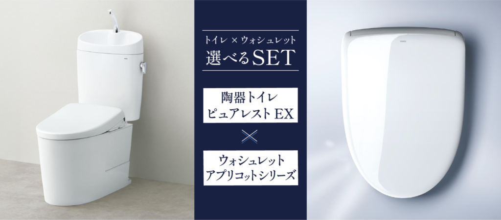 TOTOウォシュレット最上位のアプリコットFシリーズを組み合わせたセットです。