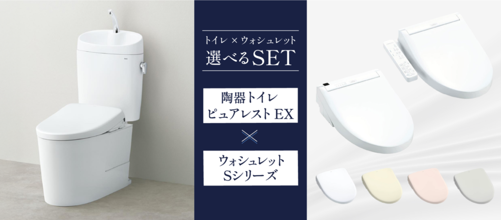 スタンダードナ機能を持ったウォシュレットSシリーズを組み合わせたセットです。